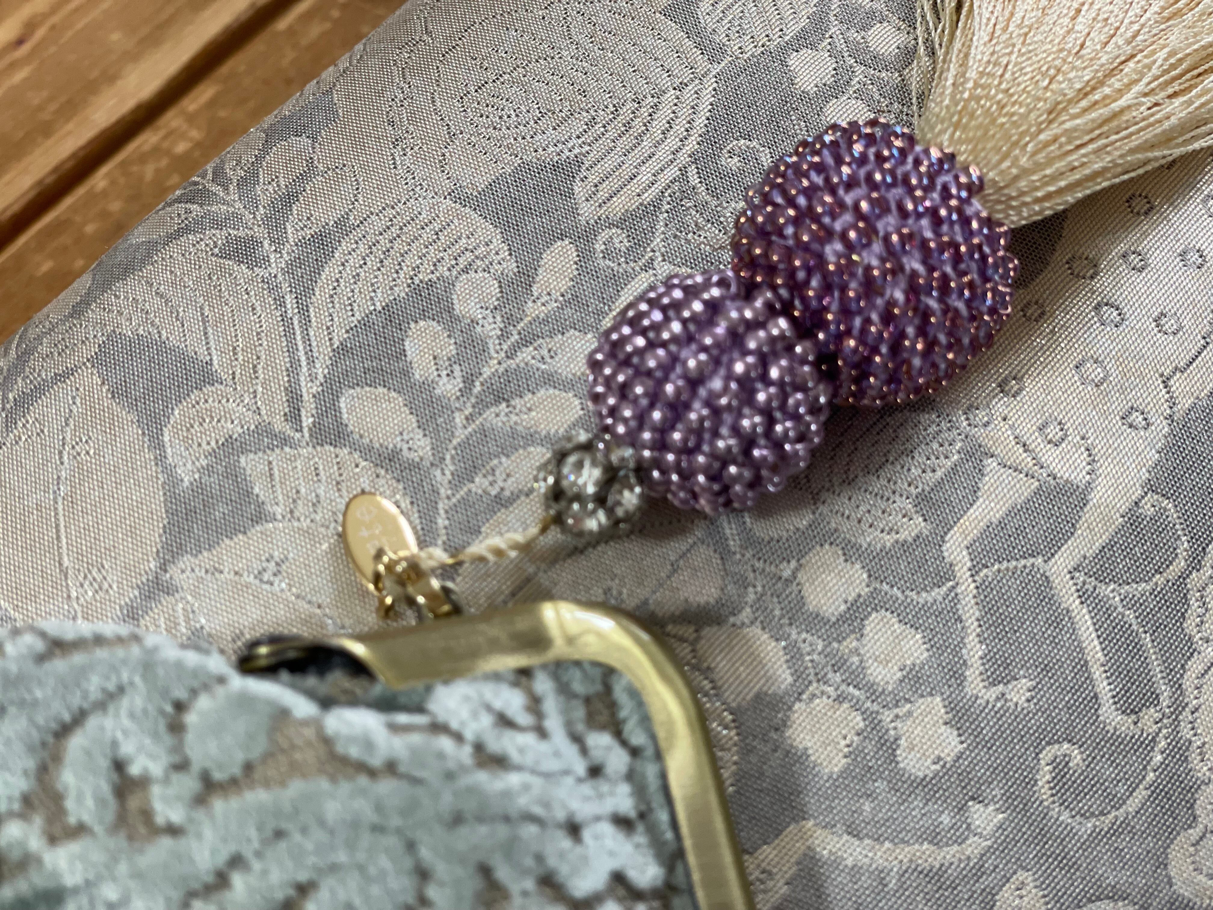 ダマスク調のベルベッドが美しいはこせこカードタイプにコロンとしたボンボンタッセルが可愛い、帯周りを華やかに、そして便利に飾る「月輪屋オリジナル根付」『はせこぼんぼん・ユーロ』タイプ